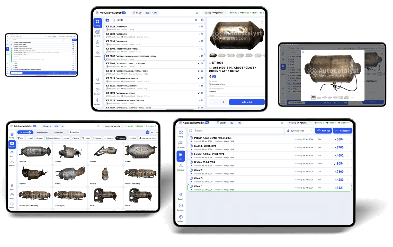 Buyer's companies have the opportunity to work not only with unit prices for catalysts but also process lists of catalysts provided by managers and customers. In addition, the option of conducting mutual settlements with your managers and clients is available.